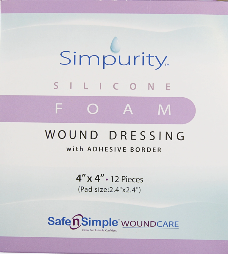 Foam w/Silicone Border 4” x 4” pad 12/box 6"x 6" Bandage Size