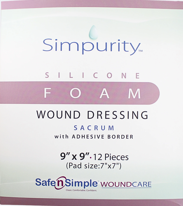 Foam w/Silicone Border Sacral Shape 5”x 5” 12/box 7" x 7" size