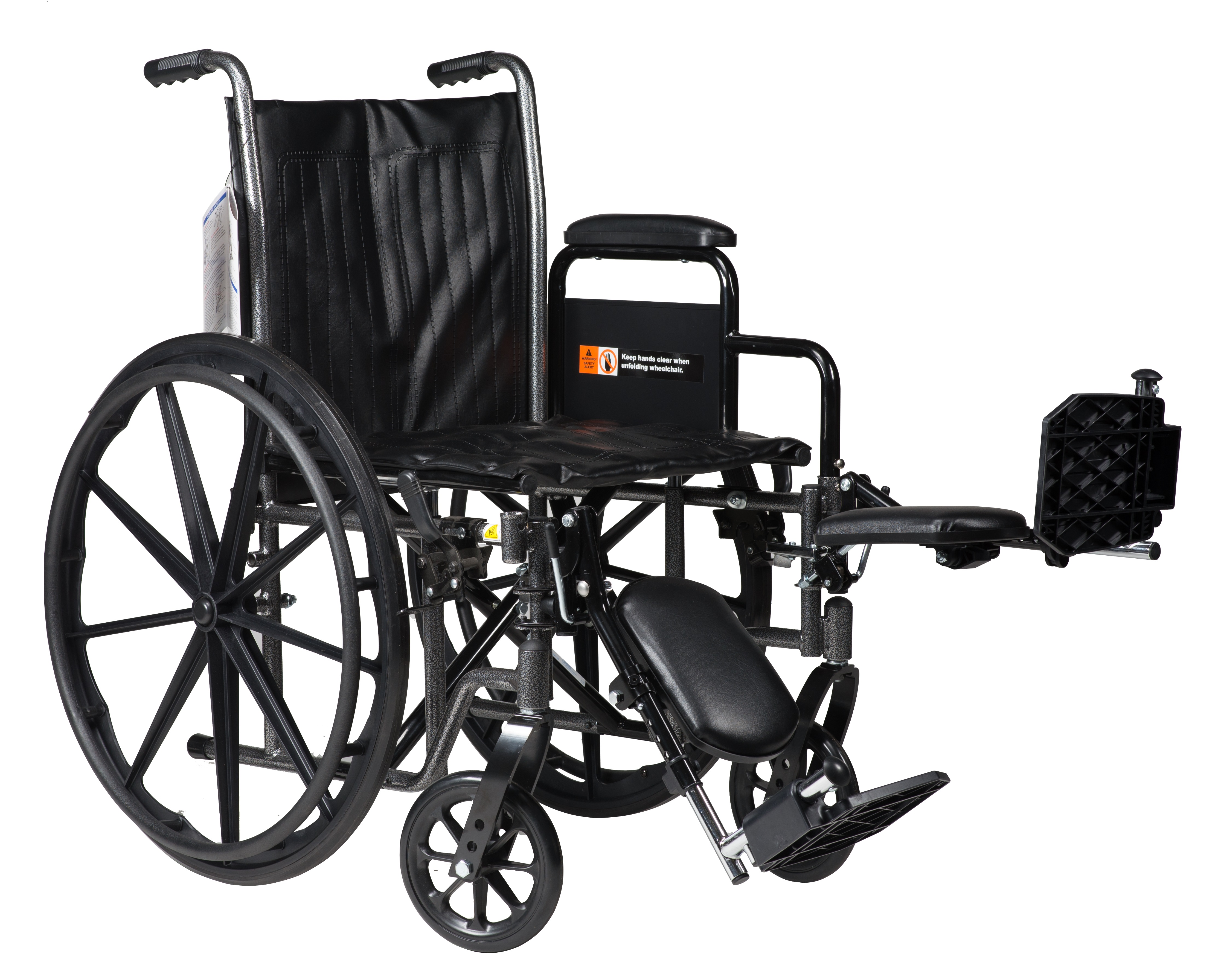 • Equipped with tool-free adjustable elevating leg rest or swing-away footrest with heel loop